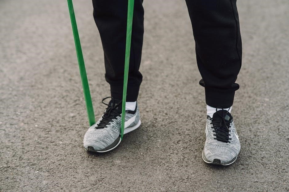 Pause briefly at the peak contraction‚ then slowly lower your heels back to the starting position‚ maintaining tension on the band․ This exercise enhances calf strength‚ improves ankle mobility‚ and supports overall lower leg function․